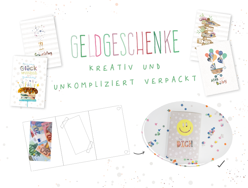 Passend für alle Geldscheine sind sie der ideale Begleiter, um diese kreativ und trotzdem unkompliziert zu verpacken. Gleichzeitig ist genügend Raum für persönliche Worte und (Glück-) Wünsche.