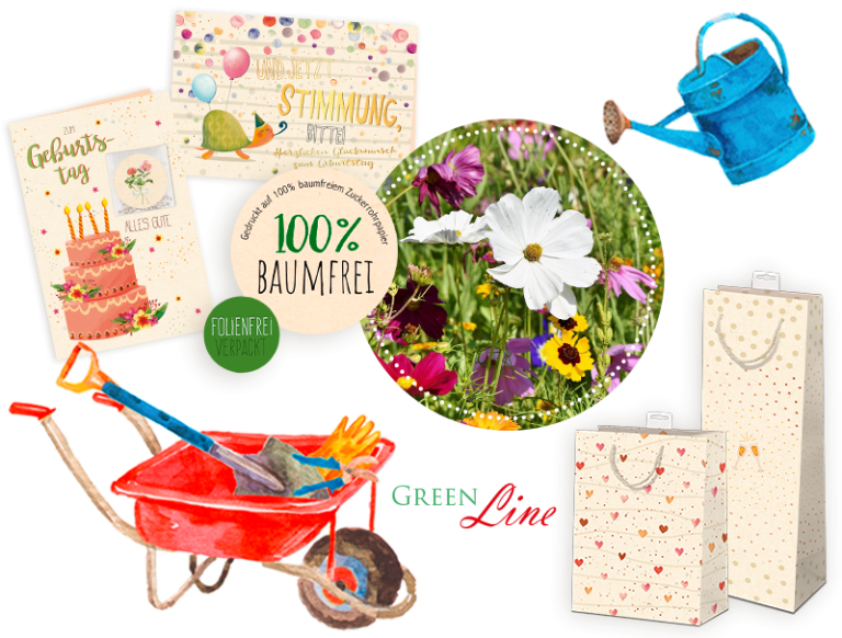 Daher setzten wir auf Upcycling und drucken die Produkte unserer Green Line Kollektion auf 100% natürlichem Zuckerrohrpapier, das durch seinen Rohstoff 100% baumfrei ist.