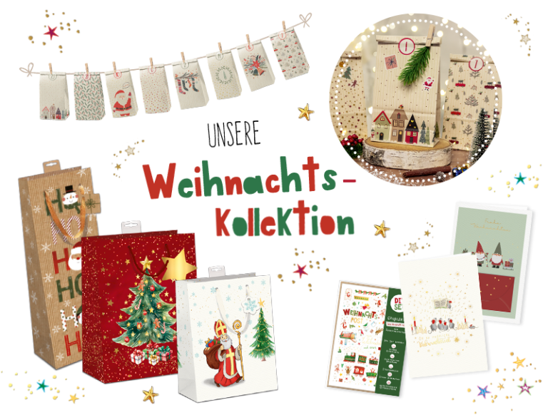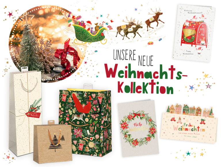 Lassen Sie sich von unseren Neuheiten verzaubern und entdecken Sie die fröhliche Welt unserer Weihnachts- und Winterprodukte aus den Bereichen Grußkarten, Geschenktaschen und Papeterie.