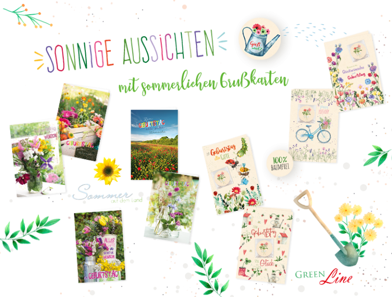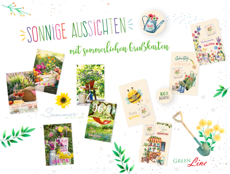 Lassen Sie sich von unseren sommerlichen Grußkarten auf warme Tage einstimmen und entdecken Sie unsere große Auswahl an Designs für sonnige Stunden.
