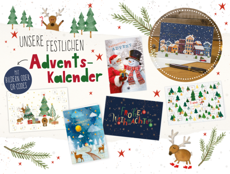 Entdecken Sie unsere Adventskalenderkarten mit Rezepten und Illustrationen hinter den Türchen als spannenden Countdown zum bevorstehenden Weihnachtsfest.
