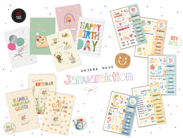 Entdecken Sie jetzt unsere neuen, kreativen Kartendesigns für Grüße mit persönlicher Note und lassen Sie sich von fröhlichen Applikationen und vielfältigen Konzepten verzaubern.