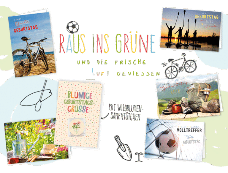 Alles wird Grün und bunt! Lassen Sie die Sonne Ihre Kraft entfalten und entdecken Sie mit unseren fröhlichen Grußkarten all die großen und kleinen Abenteuer, die diese aufblühende Zeit so mit sich bringt.