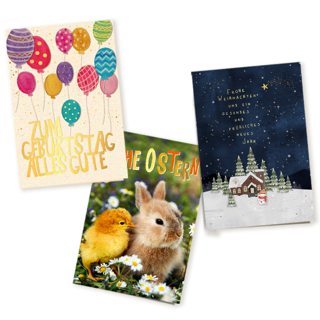 Unsere Produkte sind der ideale Weg um auf ganz klassischem Wege Grüße oder (Glück-) Wünsche zu überbringen und dem Beschenkten