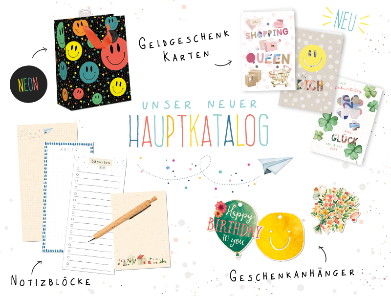 Entdecken Sie in unserer jährlichen Hauptkollektion eine Vielzahl an Neuheiten aus den Bereichen Grußkarten, Geschenktaschen und Papeterie.