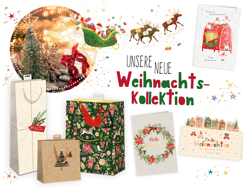 Lassen Sie sich zur schönsten Zeit des Jahres von unseren Neuheiten verzaubern und entdecken Sie die fröhliche Welt unserer Weihnachts- und Winterprodukte aus den Bereichen Grußkarten, Geschenktaschen und Papeterie.